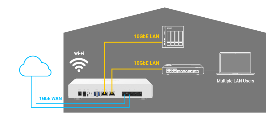 在 Wi-Fi 6 路由器的基礎上,升級雙 10GbE 網路及 SD-WAN 自動組網功能,是新世代 Wi-Fi 6 雙 10GbE SD-WAN 路由器 QHora-301W 的設計初衷,同時滿足公司商用或個人家庭使用雙重情境。