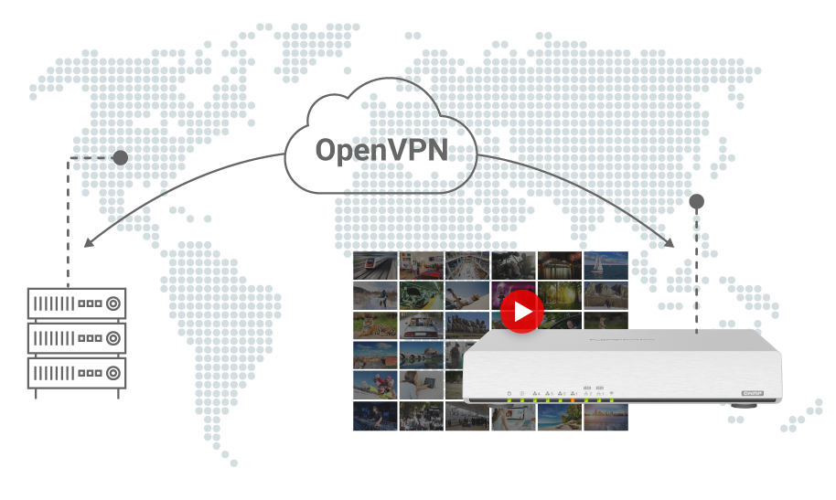QHora-301W 內建 QVPN Service,同時整合 VPN 伺服器及用戶端功能,您不僅可建立 VPN 用戶端連線至遠端伺服器或第三方服務業者,並存取其內容或服務,更可將 QHora-301W 用作 VPN 伺服器,供遠端終端裝置連線,搭配 OpenVPN、L2TP/IPSec 及 QNAP 專屬的 QBelt 通訊協定確保資料安全*。立即前往 QTS App Center 安裝QVPN Service,並設置您專屬的 VPN 連線吧!