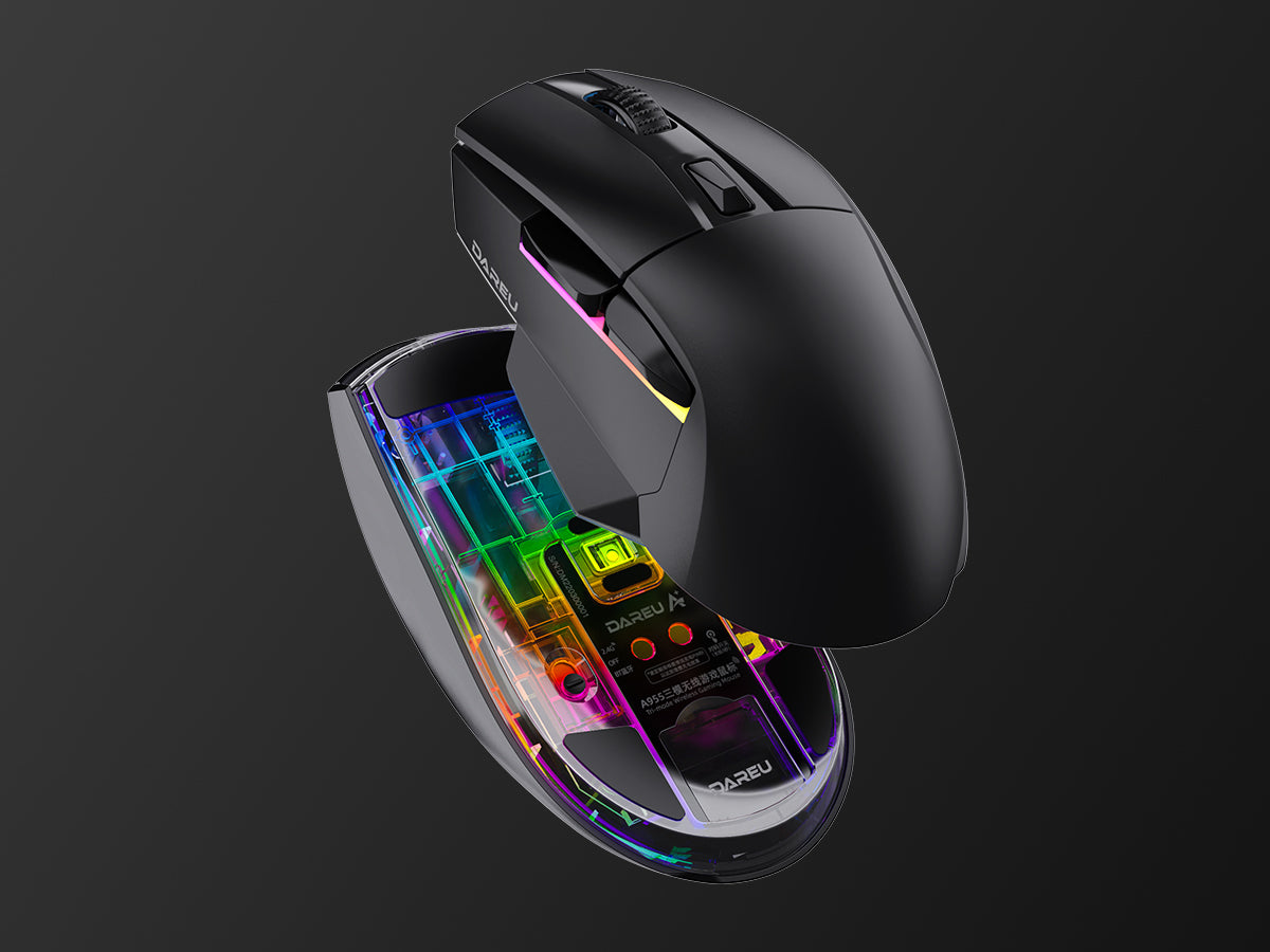 The mouse features a brand-new transparent bottom cover design, paired with RGB lighting effects for a modern and stylish look.