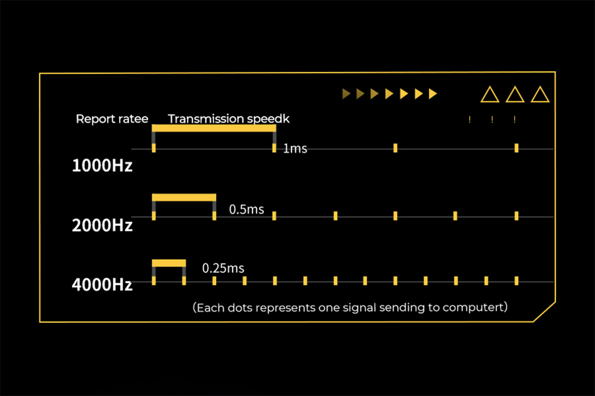 Up to 4000Hz reporting rate brings fast transmission speed at 0.25ms for smooth and precise performance.